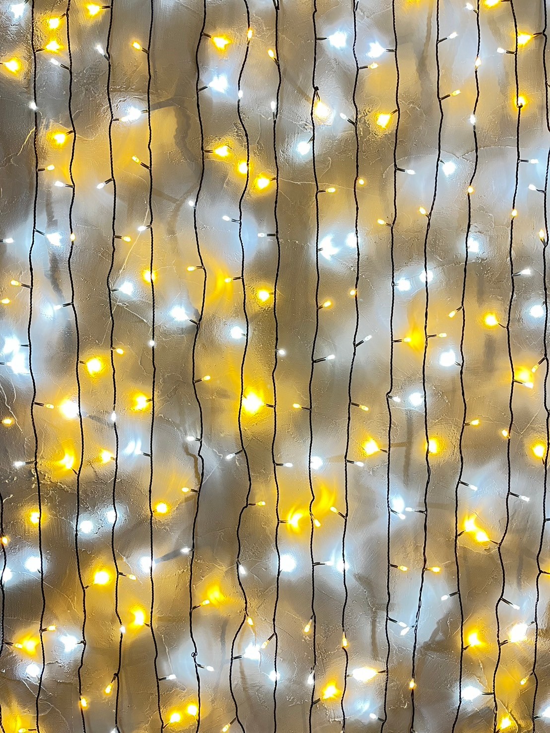 トーンを合わせたホワイトーとシャンパンゴールドの色目を組み合わせ、 奥行のあるストリングライトを作りました。