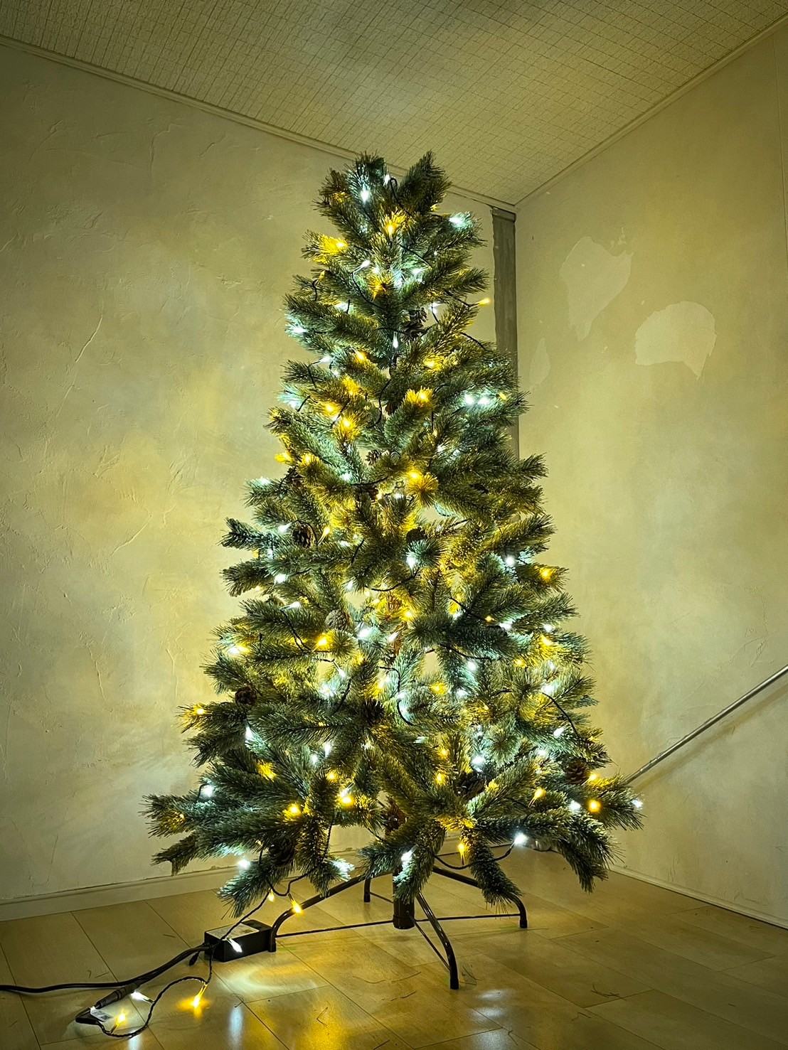 ※薄暗い部屋で白い壁とフローリングで撮影しています。